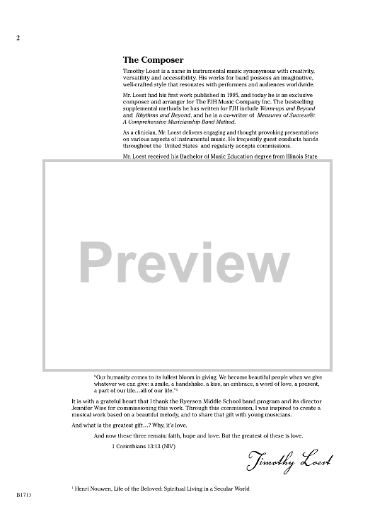 "The Greatest Gift - Score" Sheet Music by Timothy Loest