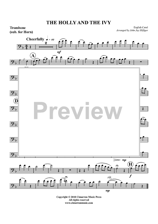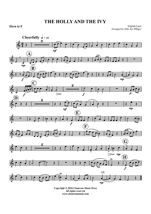 Digital Sheet Music for The Holly and the Ivy - Horn in F by John Jay Hilfiger, English Carol scored for Brass Quartet; id:427415