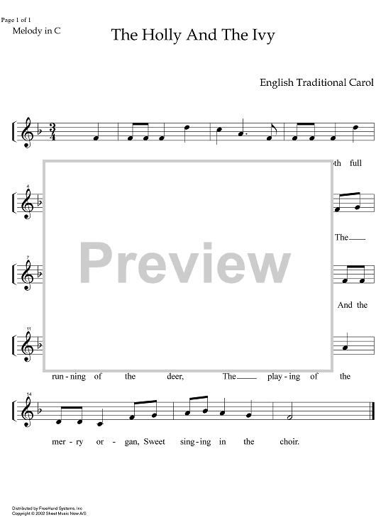 Digital Sheet Music for The Holly and The Ivy by Traditional scored for Piano/Vocal; id:337569