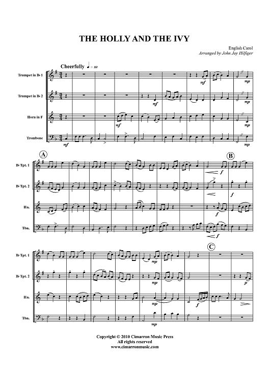 Digital Sheet Music for The Holly and the Ivy - Score by John Jay Hilfiger, English Carol scored for Brass Quartet; id:427412