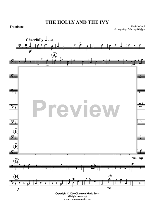 Digital Sheet Music for The Holly and the Ivy - Trombone by John Jay Hilfiger, English Carol scored for Brass Quartet; id:427417