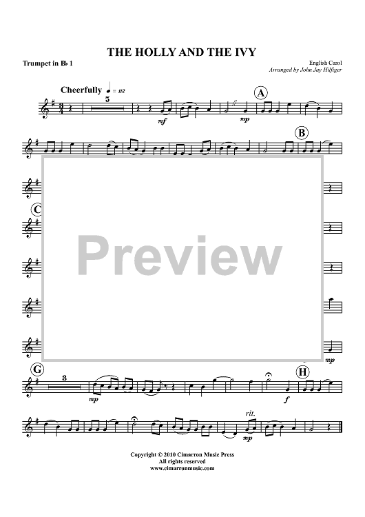 Digital Sheet Music for The Holly and the Ivy - Trumpet 1 in Bb by John Jay Hilfiger, English Carol scored for Brass Quartet; id:427413