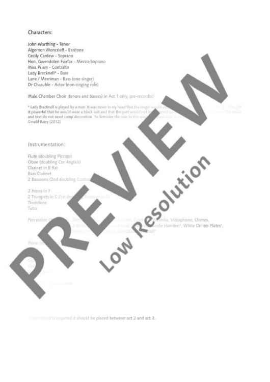 "The Importance of Being Earnest - Piano Reduction" Sheet Music by Gerald Barry