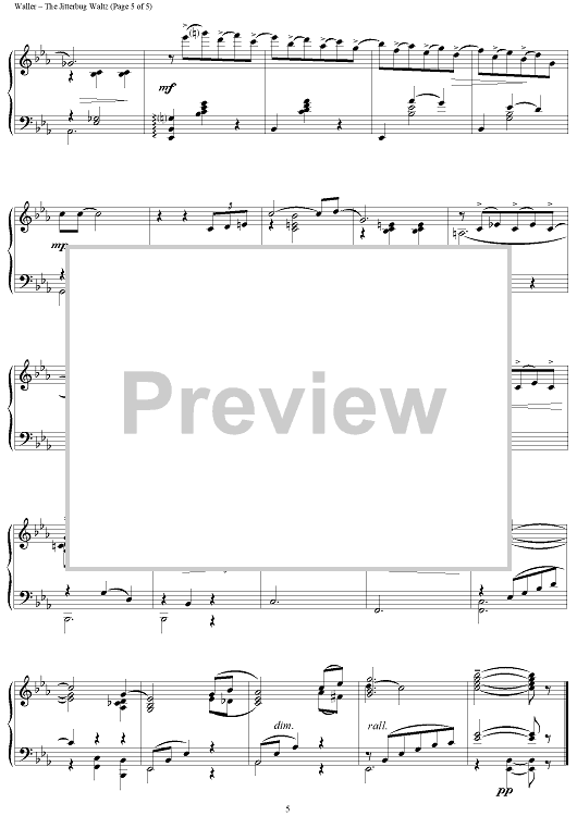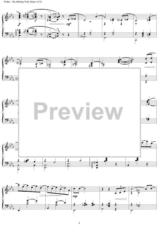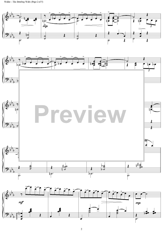 Digital Sheet Music for The Jitterbug Waltz by Fats Waller scored for Piano Solo; id:135497