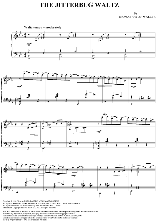 "The Jitterbug Waltz" Sheet Music by Fats Waller
