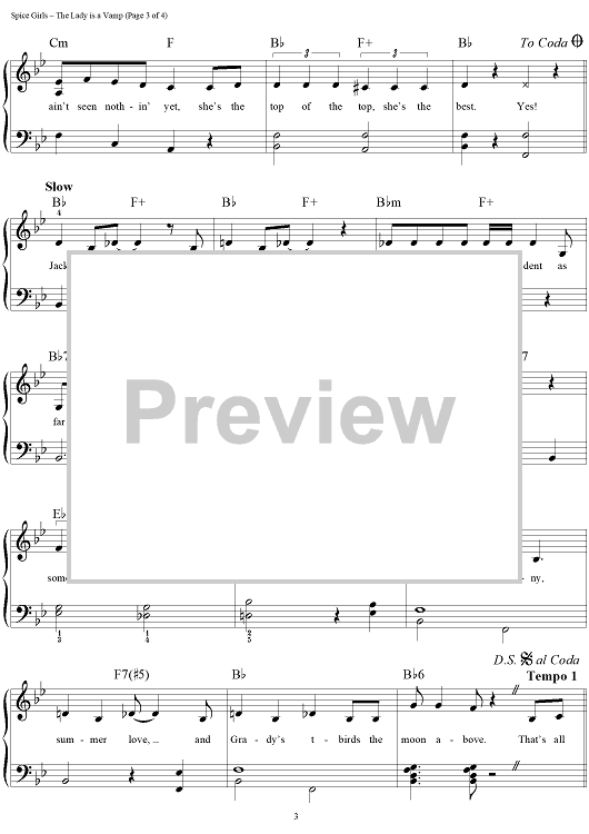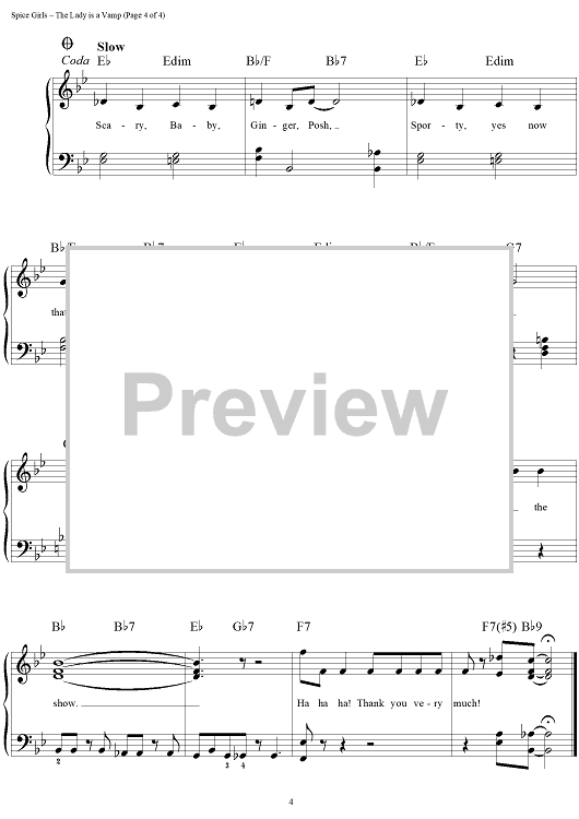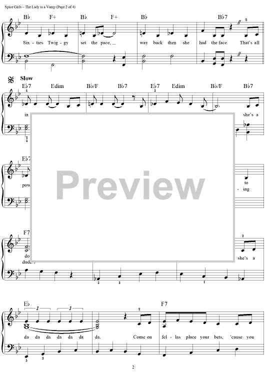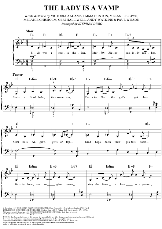 Digital Sheet Music for The Lady Is a Vamp by Paul Wilson, Andy Watkins, Emma Bunton, Victoria Addams, Melanie Brown, Mel C, Geri Halliwell, Stephen Duro, Spice Girls scored for Easy Piano/Vocal; id:215888