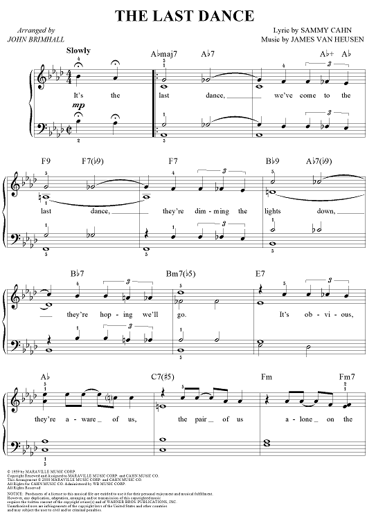 Digital Sheet Music for The Last Dance by Sammy Cahn, Jimmy Van Heusen, John Brimhall scored for Easy Piano/Vocal; id:264852