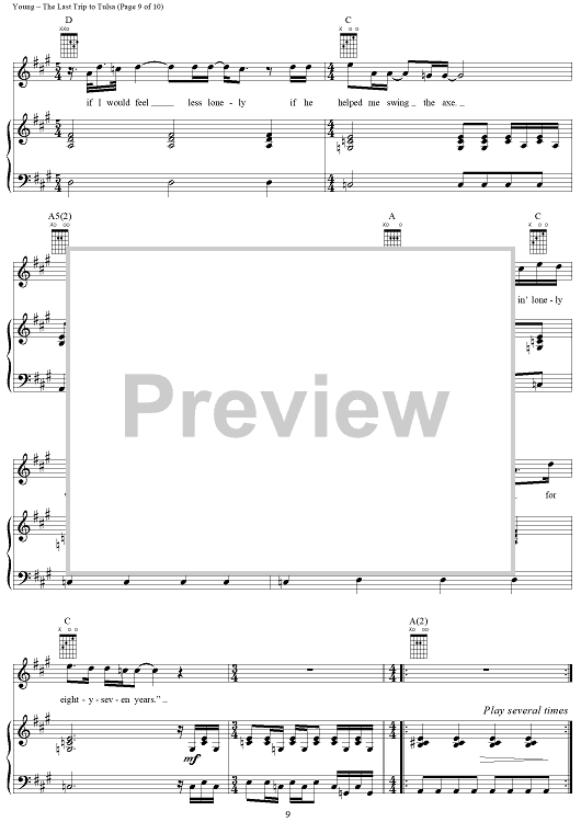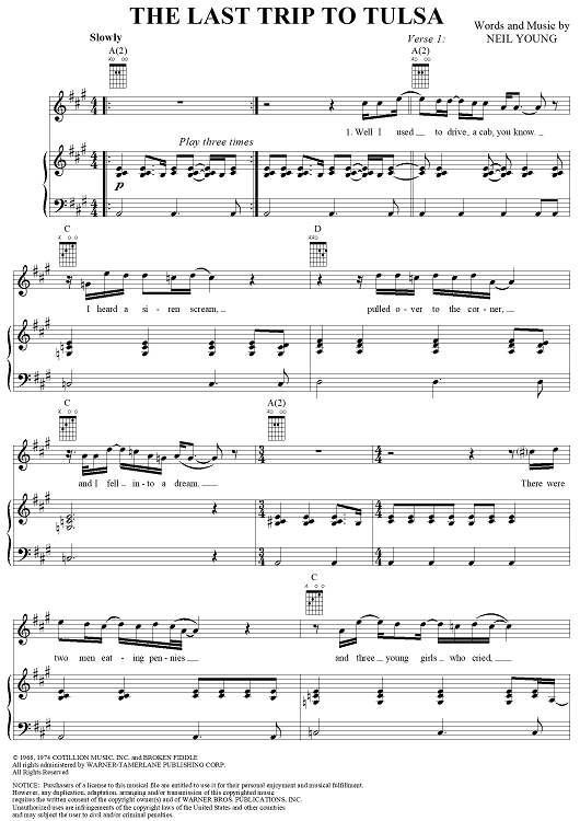 Digital Sheet Music for The Last Trip to Tulsa by Neil Young scored for Piano/Vocal/Chords; id:318496