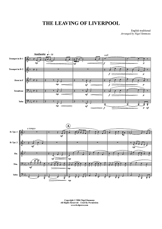Digital Sheet Music for The Leaving of Liverpool - Score by Nigel Simmons, English Traditional scored for Brass Quintet; id:428095