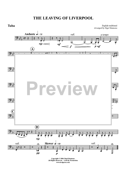 Digital Sheet Music for The Leaving of Liverpool - Tuba by Nigel Simmons, English Traditional scored for Brass Quintet; id:428100