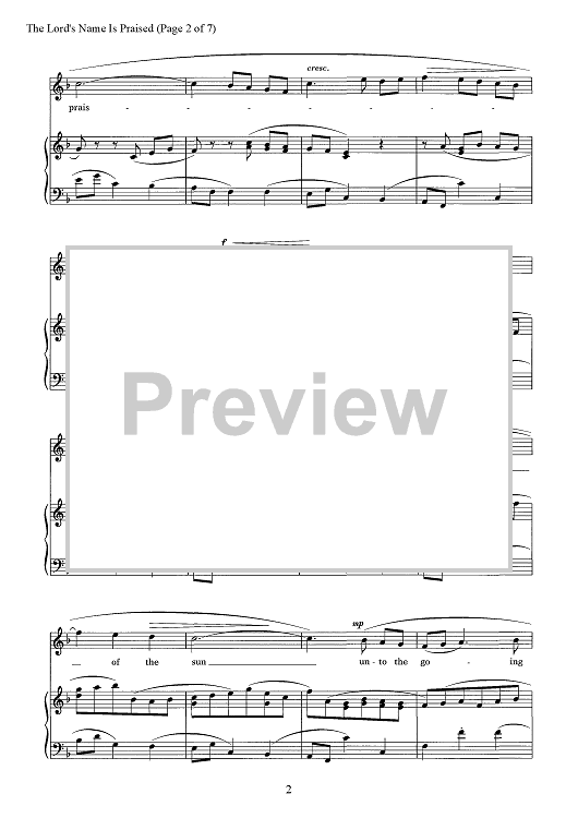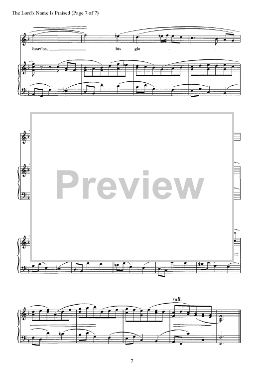 Digital Sheet Music for The Lord's Name Is Praised (Praise the Lord, ye servants) by Maurice Greene scored for Piano/Vocal; id:466757