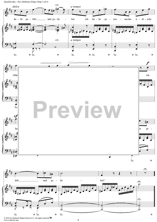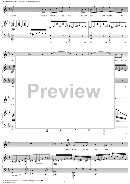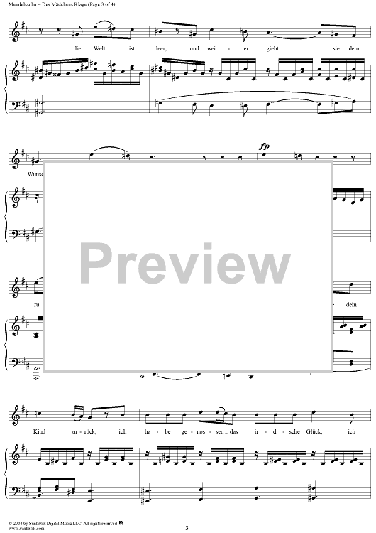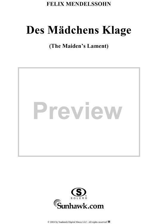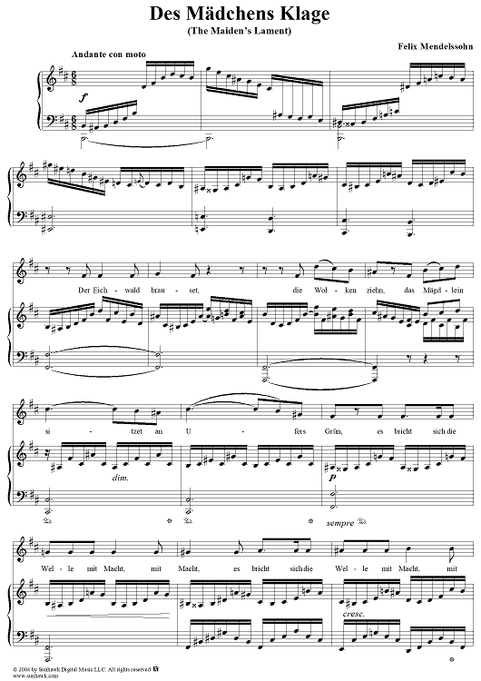 Digital Sheet Music for The Maiden's Lament (Des Mädchens Klage) by Felix Mendelssohn scored for Voice/Piano; id:251941
