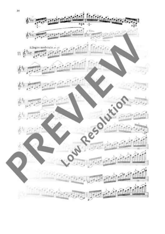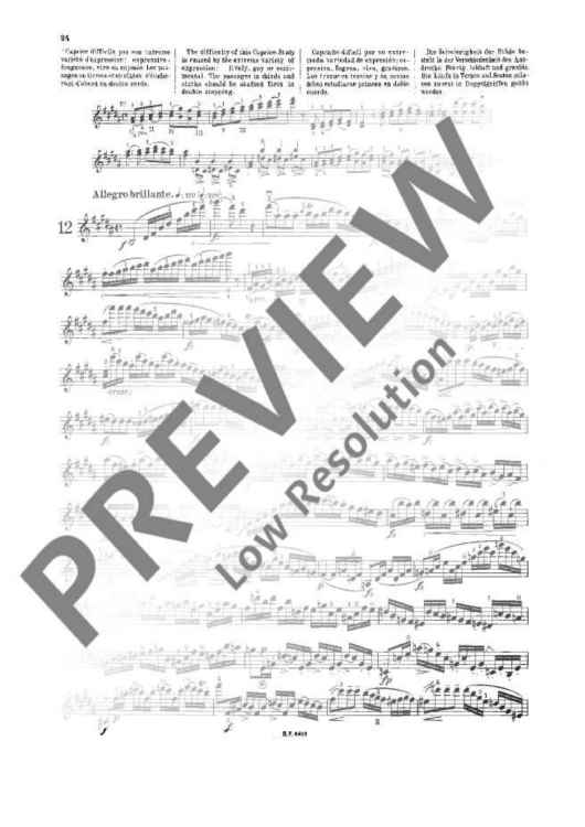 These studies have been revised after the original editions. The author's indications of tempo or nuances are placed in parenthesis. Certain of these studies are preceded by examples demonstrating different ways of playing them. The professeur may choose amongst these the most appropriate for the work of each pupil, who should endeavour to produce in the study all the variety of tone possible. It is almost useless to say that the bowings, detached, martelé, smooth, staccato, may be executed in all parts of the bow, in employing a large of very small portion of it. Also only the most essential bowings are shown. It is quite evident that the metronomic movement indicated is at fault if the pupil executes the passage in a slower or more accelerated tempo, or again, with a different nuance. The pupil will remember also that if the little notes, dumb notes, are applied in the preparatory work, they must be perceptible only in the bar indicated by the expression of the melody. As an aid to expression, they should disappear entirely in the quick passages.