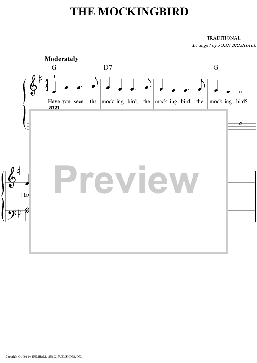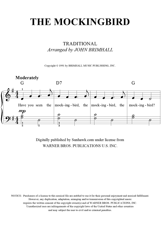 Digital Sheet Music for The Mockingbird by John Brimhall, Traditional scored for Easy Piano/Vocal; id:261452