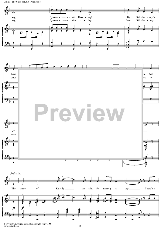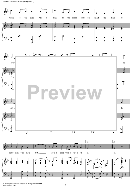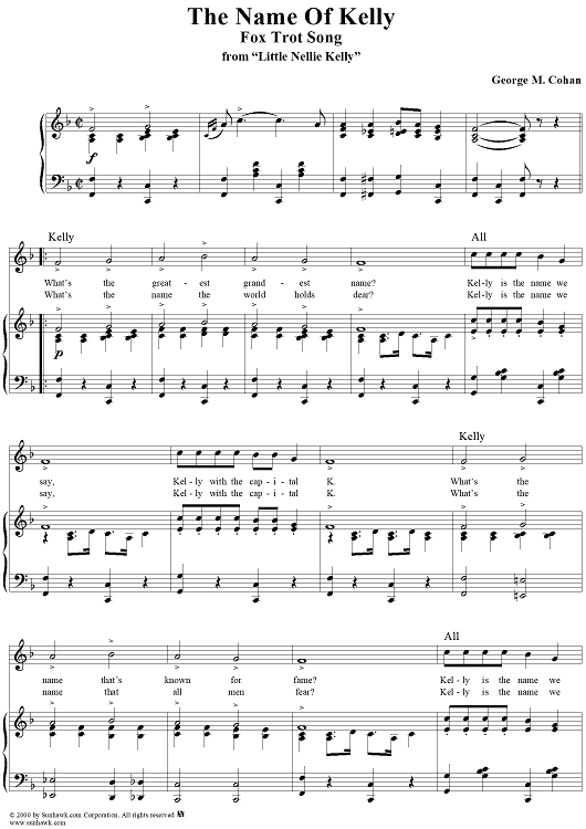 Digital Sheet Music for The Name of Kelly by George M Cohan scored for Piano/Vocal; id:272376