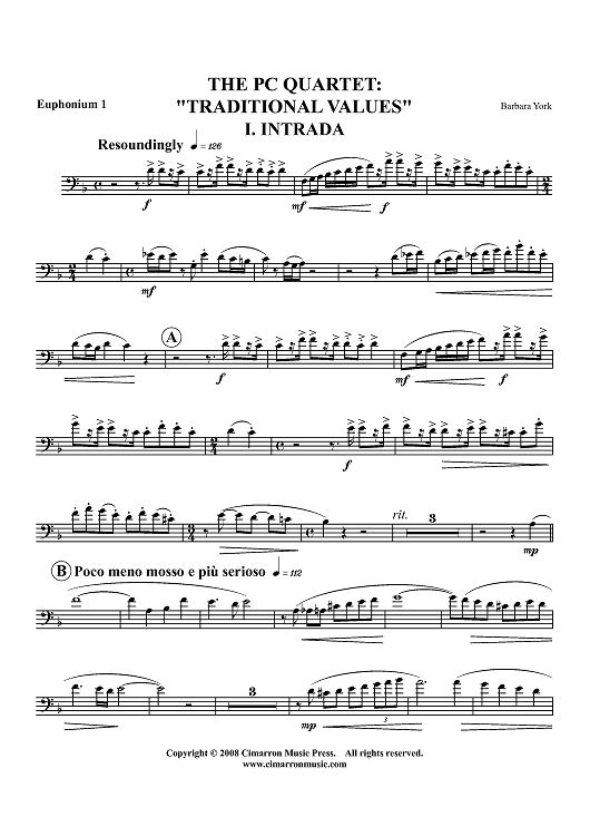 "The PC Quartet: "Traditional Values" - Euphonium 1 BC/TC" Sheet Music by Barbara York