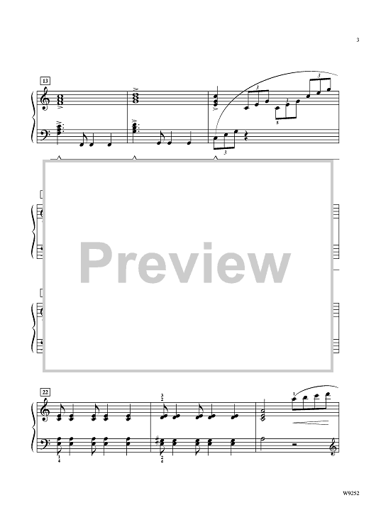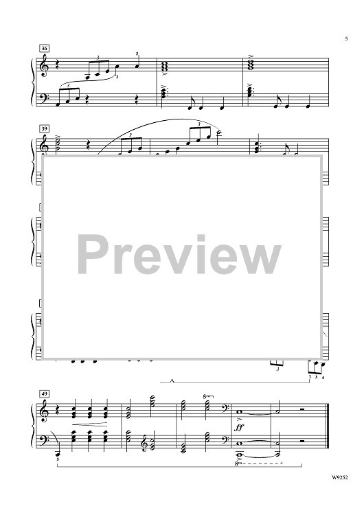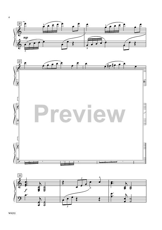 This intermediate piano piece provides "virtuosic" sounding sonorities without being technically difficult to perform. The piece includes crossover ascending and descending arpeggios, sixteenth-note passages, and a wide variety of rhythmic patterns.