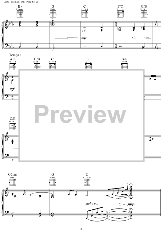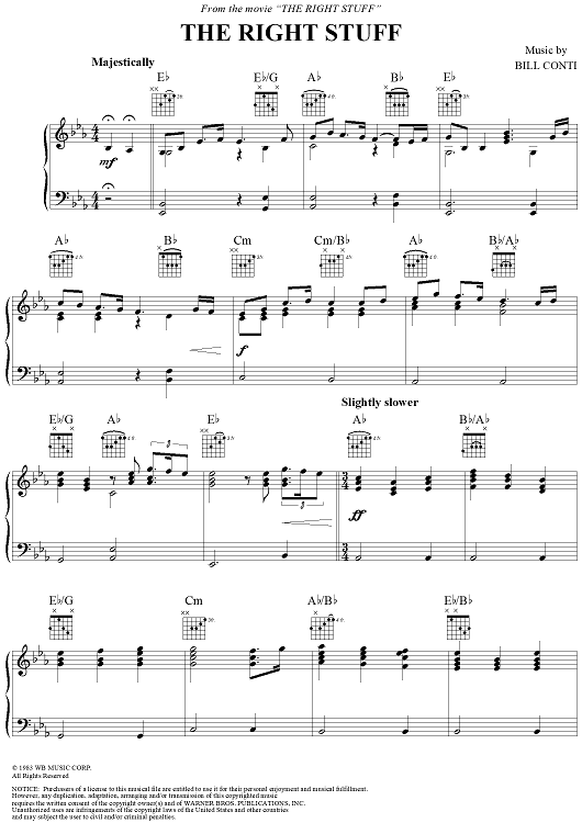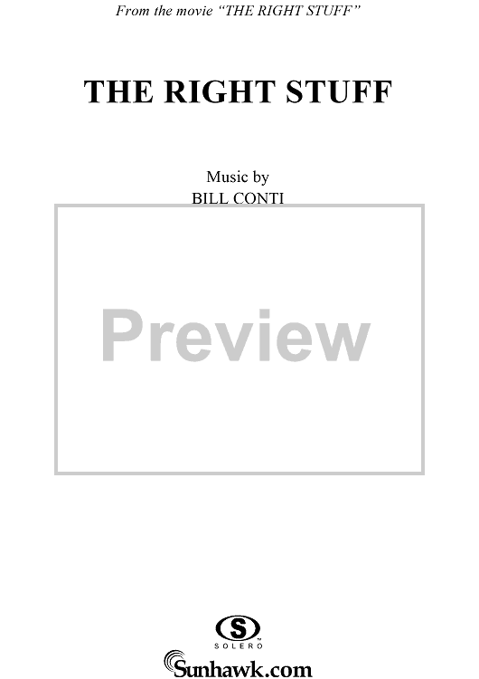 Digital Sheet Music for The Right Stuff by Bill Conti scored for Piano Solo; id:241642