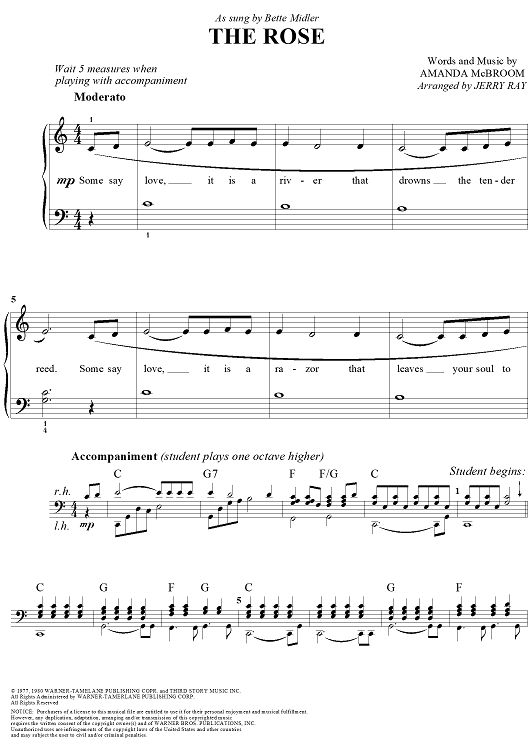 Digital Sheet Music for The Rose by Jerry Ray, Amanda McBroom scored for Easy Piano/Vocal; id:286182