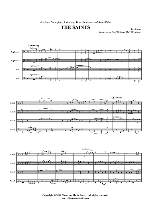 Digital Sheet Music for The Saints - Score by Traditional, Todd Hill scored for Tuba Quartet; id:409932