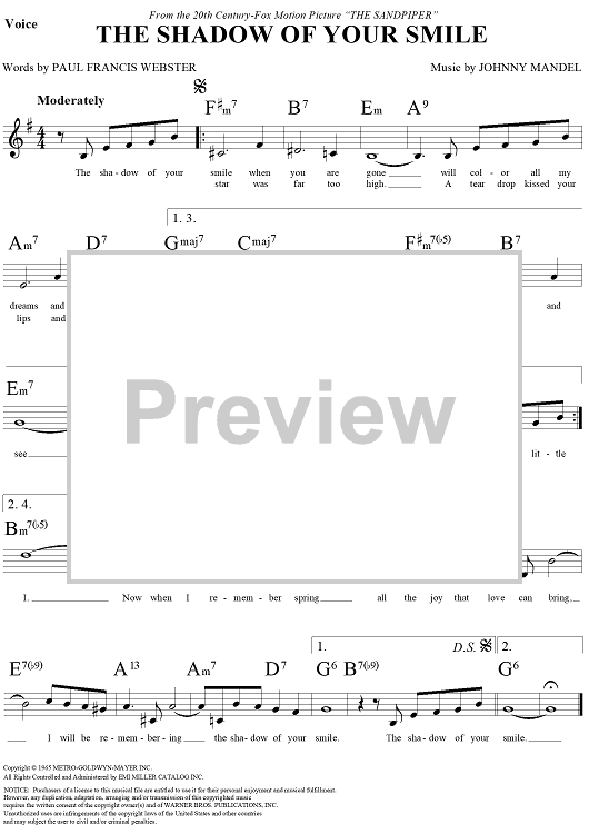 Digital Sheet Music for The Shadow of Your Smile by Paul Francis Webster, Johnny Mandel scored for Lead Sheet; id:251452