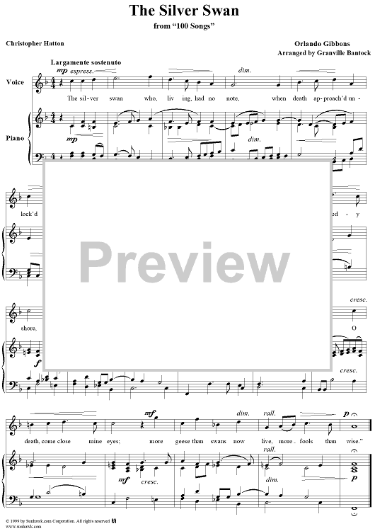Digital Sheet Music for The Silver Swan by Orlando Gibbons, Granville Bantock, Christopher Hatton scored for Voice/Piano; id:269018
