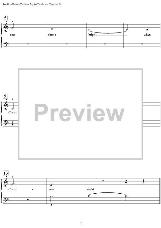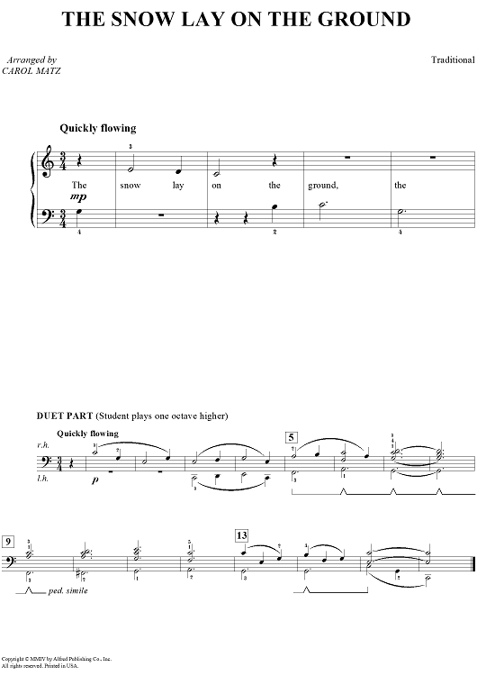 Digital Sheet Music for The Snow Lay On The Ground by Carol Matz, Traditional scored for Piano; id:453579