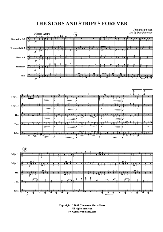 Digital Sheet Music for The Stars and Stripes Forever - Score by John Philip Sousa, Donald Patterson scored for Brass Quintet; id:317434