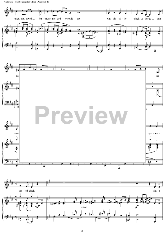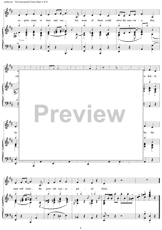Digital Sheet Music for The Syncopated Clock by Mitchell Parish, Leroy Anderson scored for Piano/Vocal; id:289014