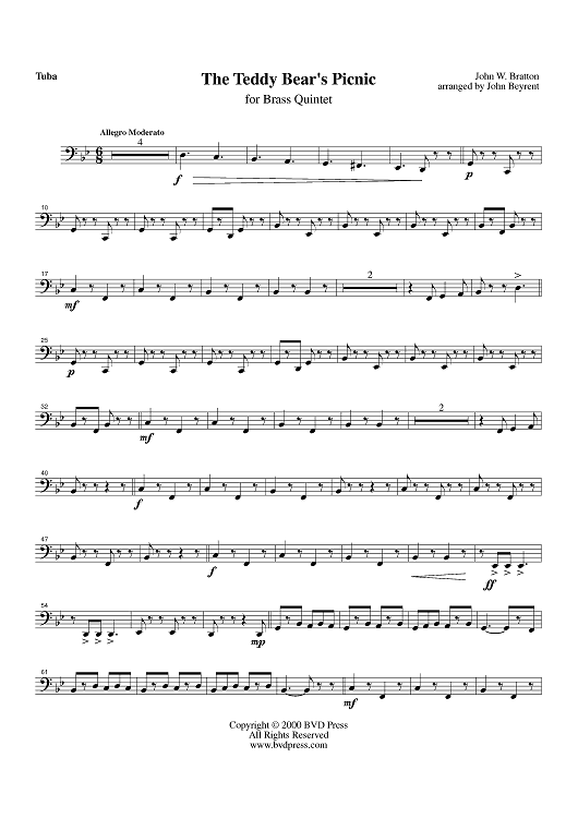 Digital Sheet Music for The Teddy Bear's Picnic - Tuba by John W. Bratton, John Beyrent scored for Brass Quintet; id:314036