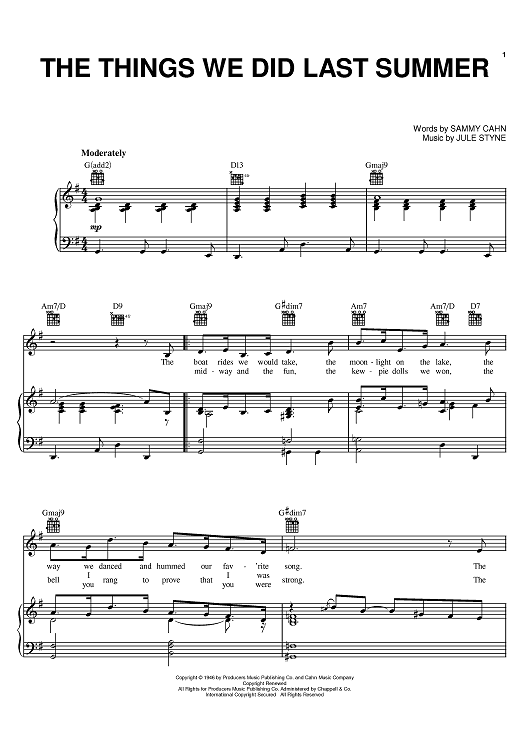 Digital Sheet Music for The Things We Did Last Summer by Frank Sinatra, Jule Styne, Sammy Cahn, Dean Martin, Jo Stafford scored for Piano/Vocal/Chords; id:375423