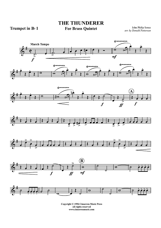 Digital Sheet Music for The Thunderer - Trumpet 1 by John Philip Sousa, Donald Patterson scored for Brass Quintet; id:315590