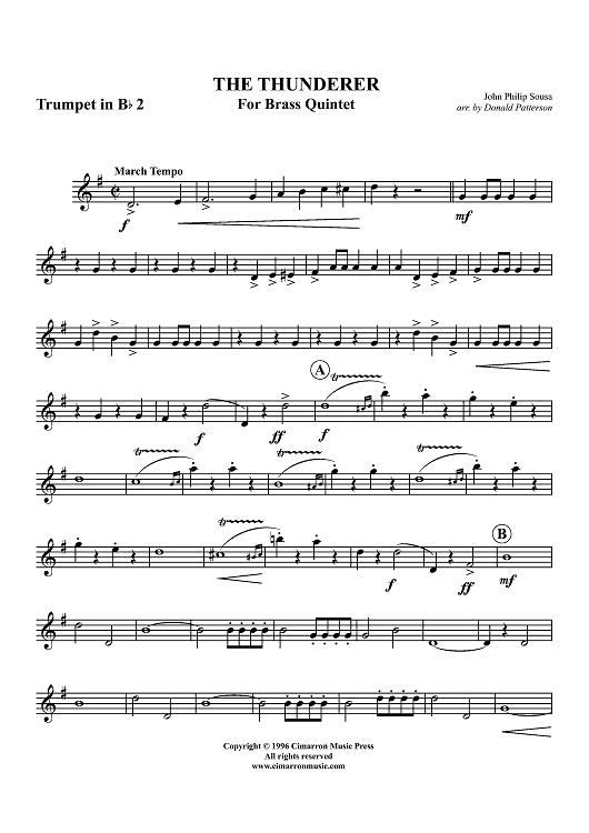 Digital Sheet Music for The Thunderer - Trumpet 2 by John Philip Sousa, Donald Patterson scored for Brass Quintet; id:315591