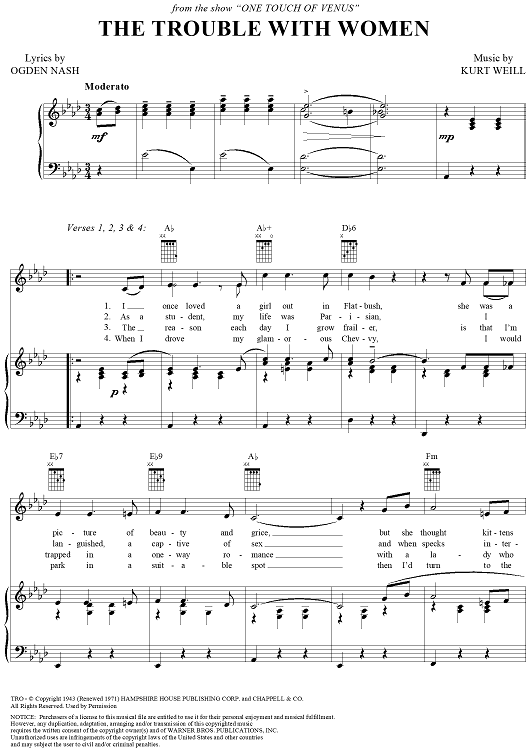 Digital Sheet Music for The Trouble With Women by Ogden Nash, Kurt Weill scored for Piano/Vocal; id:263362
