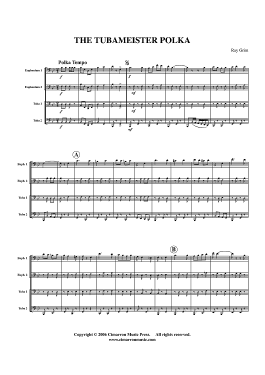 Digital Sheet Music for The Tubameister Polka - Score by Ray Grim scored for Tuba Quartet; id:357593
