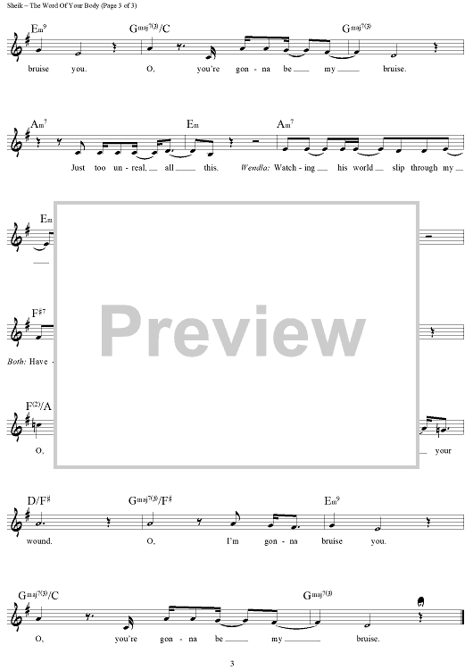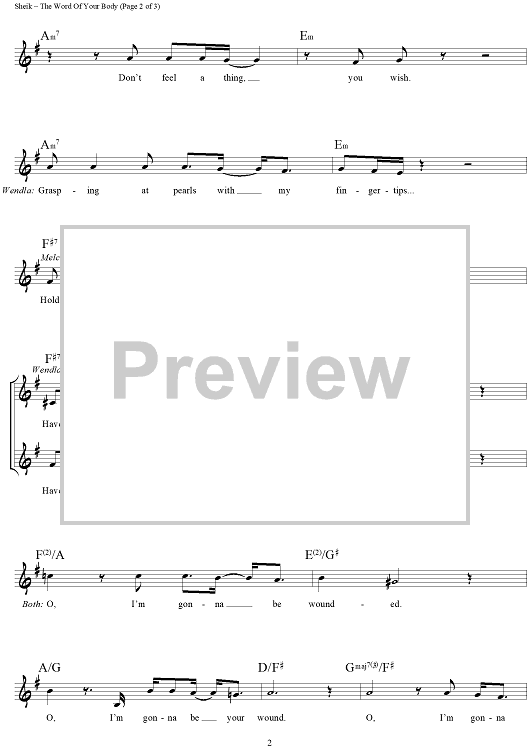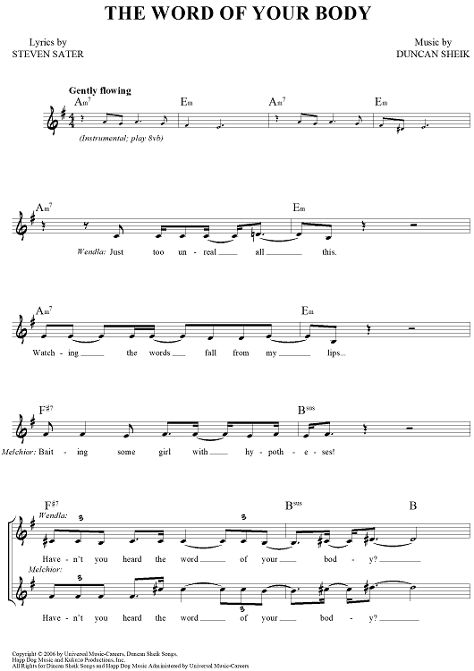 Digital Sheet Music for The Word of Your Body by Duncan Sheik, Steven Sater scored for Lead Sheet; id:457502