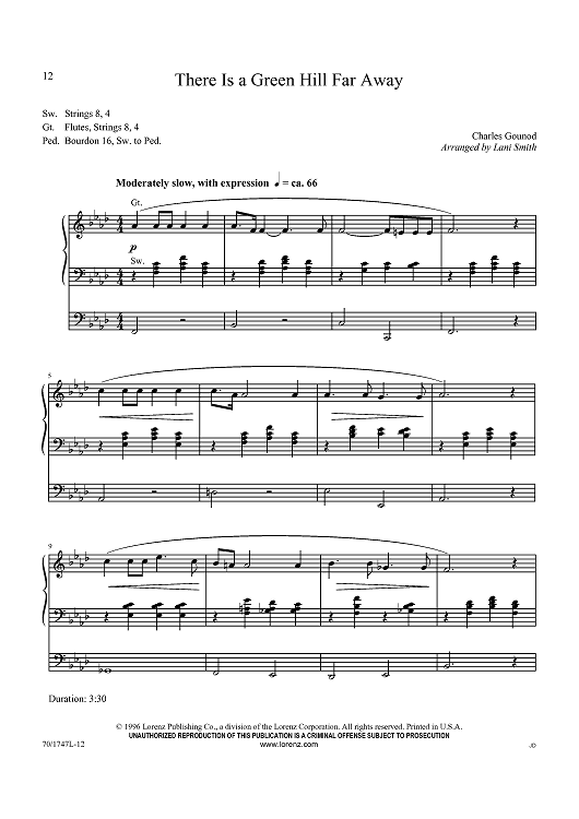 Digital Sheet Music for There Is a Green Hill Far Away by Charles Gounod, Lani Smith scored for Organ Solo; id:437643