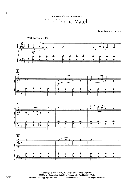 "TheTennis Match" Sheet Music by Lois Rehder Holmes