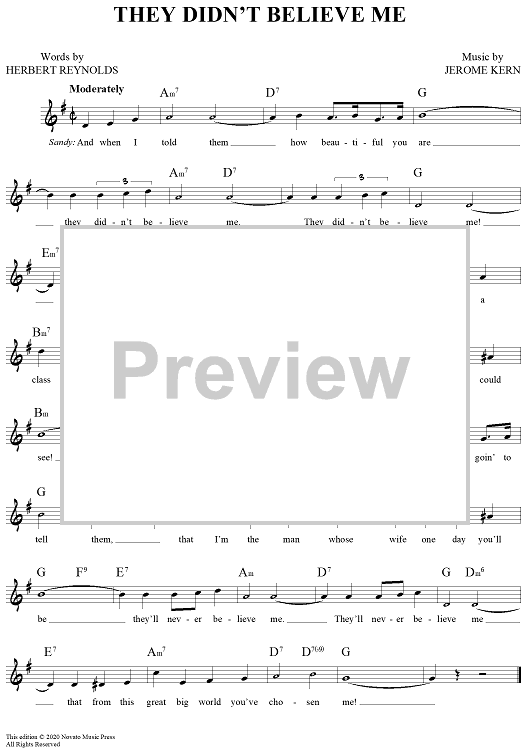 Digital Sheet Music for They Didn't Believe Me by Jerome Kern, Herbert Reynolds scored for Lead Sheet; id:444377