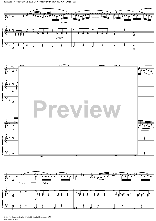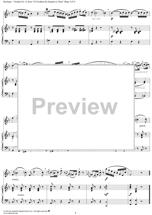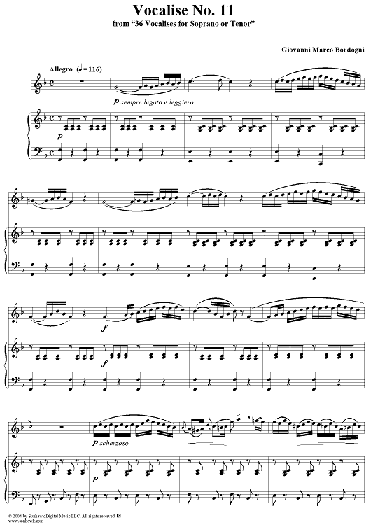 Digital Sheet Music for Thirty-Six Vocalises for Soprano: No. 11 by Giovanni Marco Bordogni scored for Voice/Piano; id:302969