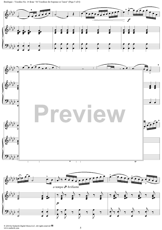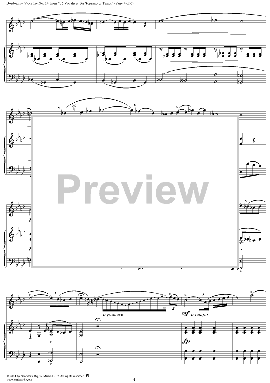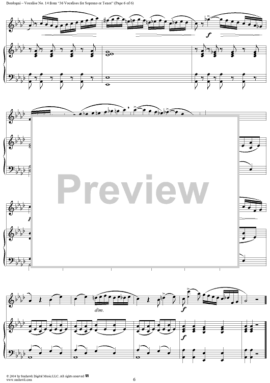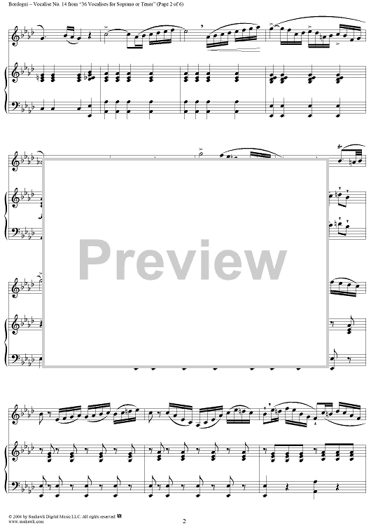 Digital Sheet Music for Thirty-Six Vocalises for Soprano: No. 14 by Giovanni Marco Bordogni scored for Voice/Piano; id:302972