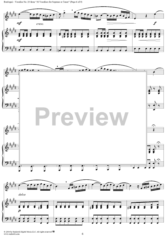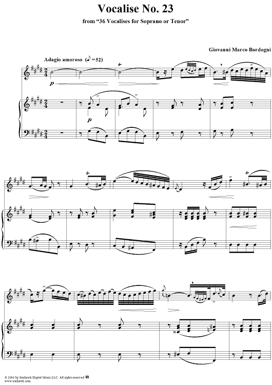 Digital Sheet Music for Thirty-Six Vocalises for Soprano: No. 23 by Giovanni Marco Bordogni scored for Voice/Piano; id:302981