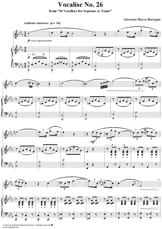 Digital Sheet Music for Thirty-Six Vocalises for Soprano: No. 26 by Giovanni Marco Bordogni scored for Voice/Piano; id:302984
