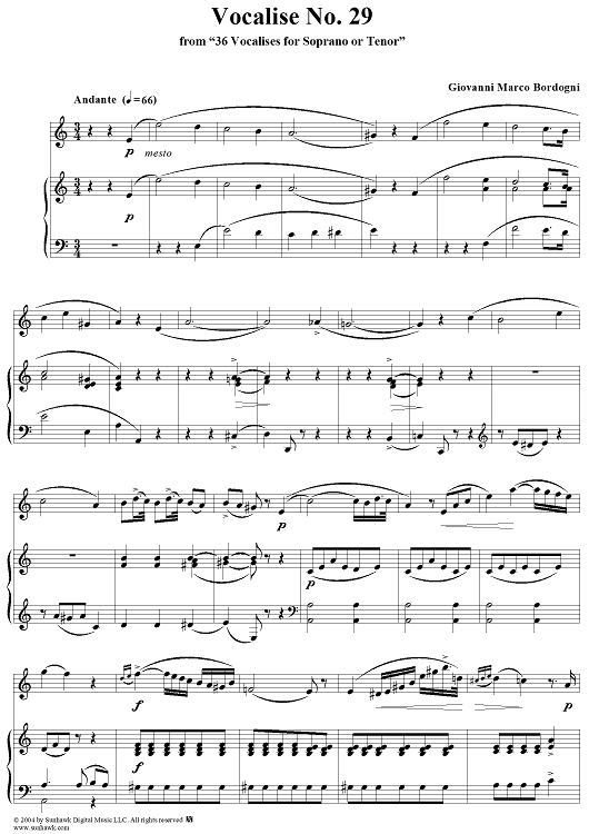 Digital Sheet Music for Thirty-Six Vocalises for Soprano: No. 29 by Giovanni Marco Bordogni scored for Voice/Piano; id:302987