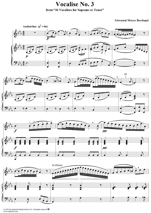 "Thirty-Six Vocalises for Soprano: No. 3" Sheet Music by Giovanni Marco Bordogni