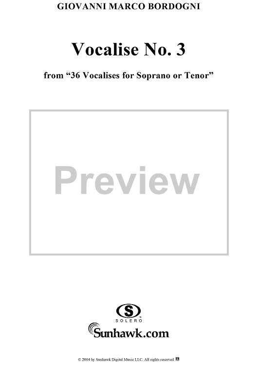 Digital Sheet Music for Thirty-Six Vocalises for Soprano: No. 3 by Giovanni Marco Bordogni scored for Voice/Piano; id:302961
