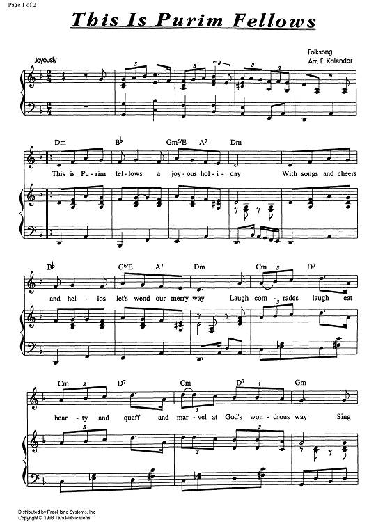 Digital Sheet Music for This Is Purim Fellows by , Edward Kalendar, Traditional scored for Voice/Piano; id:343841