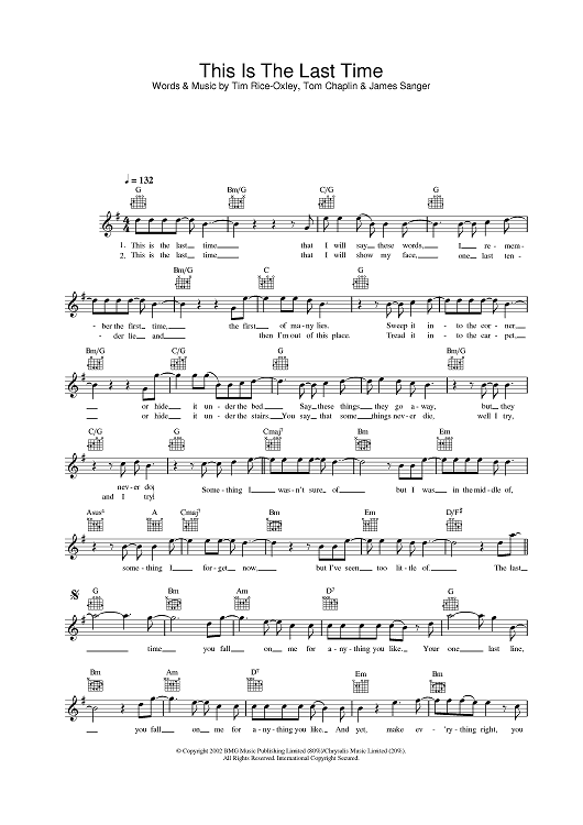 Digital Sheet Music for This Is The Last Time by Keane scored for Lead Sheet; id:378164
