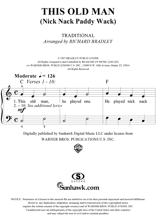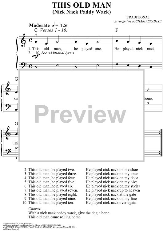 Digital Sheet Music for This Old Man by Richard Bradley, Traditional scored for Easy Piano/Vocal; id:285588