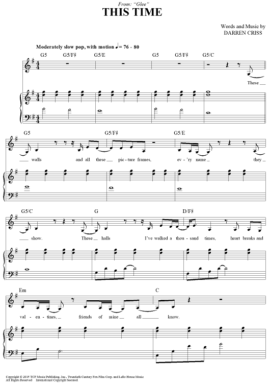 Digital Sheet Music for This Time by Darren Criss scored for Piano/Vocal/Chords; id:449067